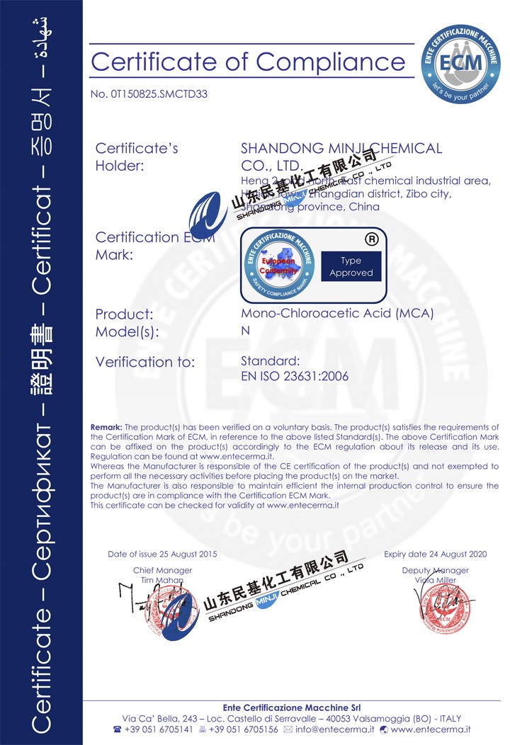 2. In pharmacy industry, used for producing the pharmaceutical intermediates of Synthetic caffeine, Epinephrine, Aminoacetic Acid, Vitamin B6, Aureomycin etc.